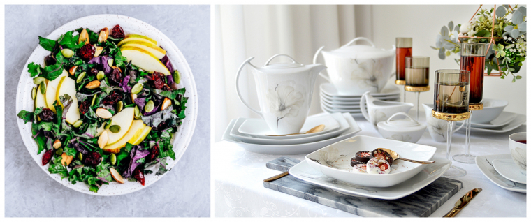 Aby dopełnić dekoracji, a także ułatwić częstowanie się przekąskami, musimy pamiętać o odpowiednim nakryciu stołu. Kolekcja Akcent Magnolia marki Chodzież dostępna jest w klasycznych 12-osobowych zestawach oraz w funkcjonalnych zestawach obiadowych, kawowych lub obiadowo-kawowych dla 6 osób. Na nowoczesnych, kwadratowych formach naczyń możemy fantazyjnie ułożyć dania, tworząc piękne kompozycje niczym z najlepszych restauracji.