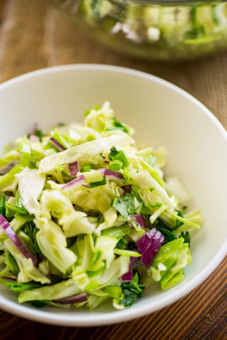 Przygotowanie tej surówki z kapusty pekińskiej zajmuje tylko 6 minut i można ją pałaszować od razu po zrobieniu. Ale jeśli masz więcej czasu, wstaw ją do lodówki na 15-20 minut, zanim ją podasz. Dzięki temu wszystkie smaki „się przegryzą”, a całość będzie jeszcze pyszniejsza i bardziej chrupiąca.