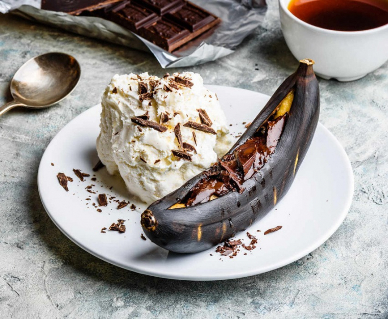 Przygotowanie tego przysmaku jest banalnie proste. Banany wystarczy przekroić na pół, posypać startą czekoladą deserową i rozdrobnionymi orzechami. Całość zawijamy w folię aluminiową. Tak przygotowany deser wystarczy grillować przez kilka minut.