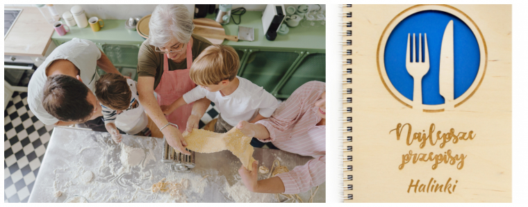 Z kolei przepiśnik to piękny zeszyt na kuchenne notatki do samodzielnego uzupełniania. Można w nim notować receptury, składniki i wszelkie kuchenne porady. W wyjątkowej drewnianej okładce z grawerem pomieści się mnóstwo kulinarnych zapisków. Sprezentujcie babci taki kulinarny gadżet, a już zawsze będzie miała swoje ulubione przepisy pod ręką. Dodatkowo pięknie oprawiony przepiśnik czy fotoksiążka to nie tylko praktyczna archiwizacja babcinych receptur, ale także piękna dekoracja zdobiąca kuchenną szafkę.