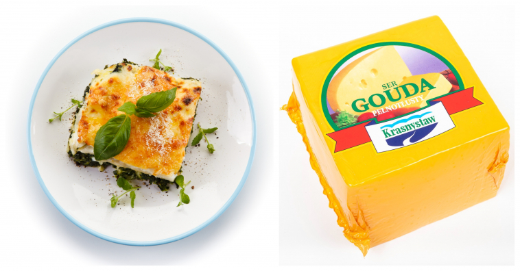 Najważniejszymi elementami tego przepisu są dobrze doprawiony szpinak, gęsty sos beszamelowy i oczywiście ser. Powinien być on wyrazisty w smaku, aromatyczny i rozkosznie się ciągnąć. Idealnie sprawdzi się tu Gouda z Krasnegostawu. To pełnotłusty naturalny ser bez konserwantów i sztucznych barwników. Jest półtwardy, i lekko kremowy, dlatego nie tylko świetnie smakuje na zimno, ale także idealnie nadaje się do zapiekania. Jego wyczuwalne nuty orzechów i słodyczy urozmaicą każde danie.