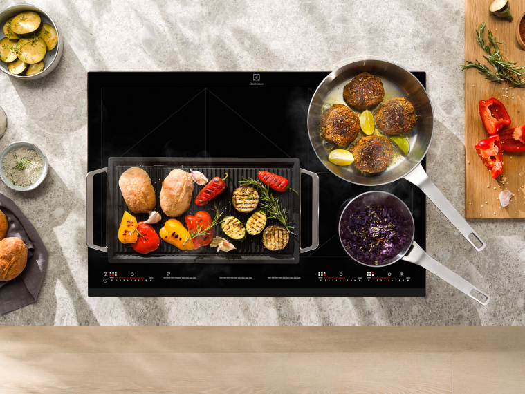Jednak piekarnik to nie wszystko- w ekologicznej kuchni niezbędna jest także płyta, najlepiej indukcyjna, dzięki której można gotować wydajnie i oszczędnie. Technologia indukcyjna zużywa aż do 90% wyprodukowanej energii. Płyty SensePro® marki Electrolux posiadają bezprzewodową termosondę, która mierzy temperaturę wnętrza potrawy i komunikuje się z płytą. Ten model ma także funkcję SousVide, umożliwiającą powolne gotowanie w kąpieli wodnej, aby wydobyć pełnię smaku i kontrolować stopień wysmażenia mięs. Z kolei płyty indukcyjne z serii 600 SenseBoil® rozpoznają moment zagotowania wody i automatycznie redukują moc, dzięki czemu nie musimy pilnować kipiących garnków. Co więcej, wskaźnik ciepła resztkowego pokaże Ci dokładnie, które strefy grzewcze nagrzały się od naczynia. Dzięki temu, że płyta nadal generuje ciepło, ale już bez pobierania mocy, w ekonomiczny sposób możemy wykorzystać do dokończenia gotowania lub podtrzymania ciepła potraw.