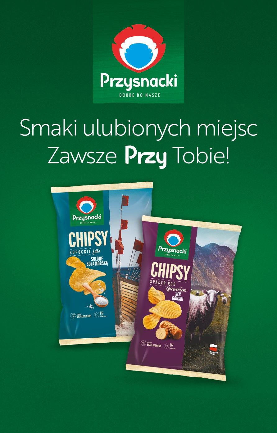 W nowej linii chipsów Przysnacki konsumenci znajdą unikatowe smaki takie jak ser górski, inspirowany tradycyjnym oscypkiem, a także śmietanę z nutą czosnku i masło z solą, przywodzące na myśl wypady za miasto, na łono pięknych, rodzimych łąk. Nie zabrakło także tradycyjnych smaków: soli morskiej, cebulki dymki, papryki oraz fromage. Aby sprostać rozmaitym gustom, w ramach linii dostępne są warianty karbowane i płaskie. Warto wspomnieć, że płaskie płatki są wyjątkowo cienkie i chrupiące, co pozwoliło uzyskać maksimum smaku. Zostało to docenione przez konsumentów w testach poprzedzających wprowadzenie produktów do sprzedaży. Wszystkie Przysnacki z linii „Polska inspiruje” dostępne są w gramaturze 130 g, a wybrane smaki także w opakowaniach 30 g i 200 g.