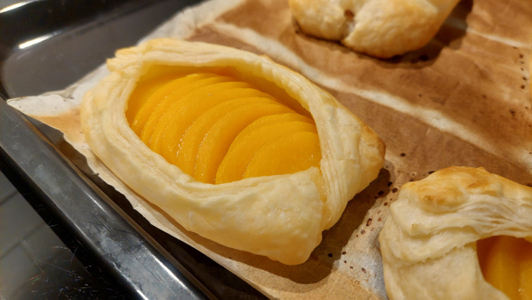 Łódeczki z ciasta francuskiego z brzoskwiniami