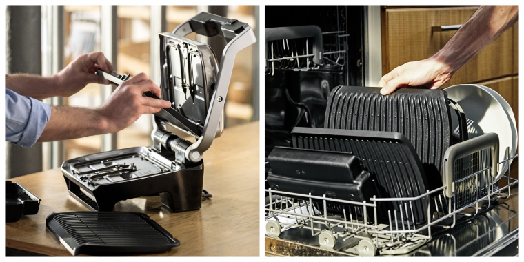 Grill elektryczny OptiGrill+ to sposób na przygotowanie potraw niczym z rusztu w domowym zaciszu. Urządzenie wykorzystuje technologię "Automatic Sensor Cooking", która wykrywa liczbę produktów umieszczonych na grillu i ich grubość, a następnie dostosowuje automatycznie temperaturę i czas grillowania. Kolejnym plusem jest łatwość utrzymania urządzenia w czystości, dzięki zdejmowanym elementom, które można myć w zmywarce.