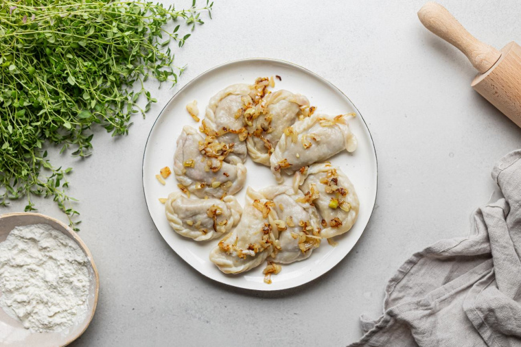 Owijamy ciasto na pierogi ściereczką lub folią spożywczą i odkładamy na minimum 30 minut. Takie „odpoczywanie” jest niezbędne, żeby gluten mocniej związał się z cząsteczkami wody. Dzięki temu ciasto nie będzie się kurczyć podczas rozwałkowywania. Możemy odłożyć je po prostu na blat kuchenny, a jeśli zamierzamy robić klasyczne pierogi z mięsem z rosołu dużo później, włóżmy je do lodówki. Pamiętajmy jednak, żeby ponownie ogrzać je przed rozpoczęciem pracy.