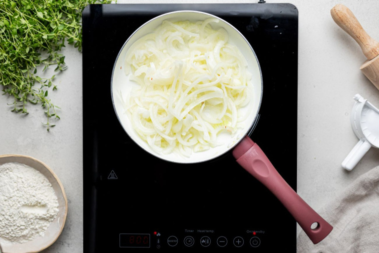 Obieramy cebule i kroimy je w piórka lub kostkę. Cięcie nie ma większego znaczenia, ponieważ warzywo i tak wyląduje w maszynce do mielenia. Ważne, żeby kawałki były w miarę równej wielkości i równomiernie się podsmażyły. Rozgrzewamy olej na dużej patelni. Wrzucamy cebulę. Czekamy, aż się ładnie zeszkli (można ją lekko zrumienić, będzie miała więcej smaku), co jakiś czas mieszając. Zdejmujemy i studzimy.