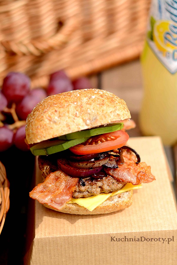 Burger z Karmelizowaną Cebulą i Bekonem w Ziarnistej Bułce