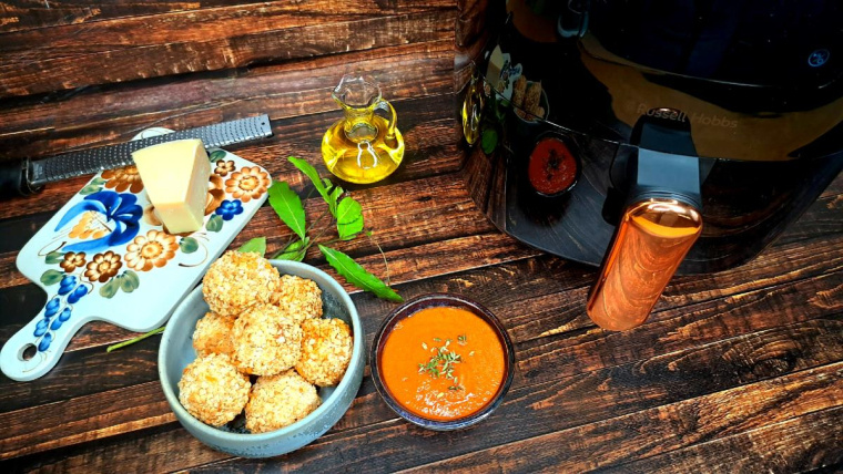 Żeby nie być gołosłownym, wykorzystaliśmy frytkownicę beztłuszczową Russell Hobbs SatisFry do zrobienia kulek ryżowych, które zazwyczaj smaży się w głębokim oleju. Kluczowe aspekty tego sycylijskiego przysmaku to rumiana i chrupiąca panierka oraz miękkie, kremowe wnętrze. Okazuje się, że z łatwością uzyskamy tę strukturę za sprawą urządzenia z techniką air fry. Za nadzienie w poniższym przepisie posłuży pikantne chorizo o intensywnym aromacie wędzonej papryki. Do zrobienia kulek ryżowych będą nam potrzebne: