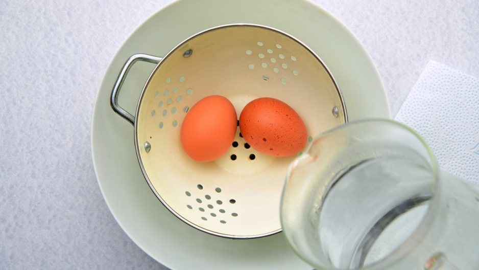 Jajka dokładnie myjemy, a następnie parzymy we wrzątku (warto polewać je przez min. 10-20 sekund, dzięki temu pozbędziemy się zanieczyszczeń i bakterii).