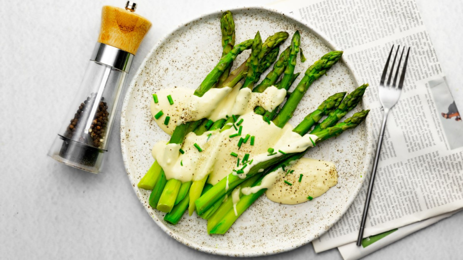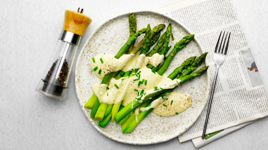 Aksamitny i gęsty sos wykładamy na ugotowane wcześniej szparagi. Danie serwujemy od razu - najlepiej smakuje jeszcze ciepłe.