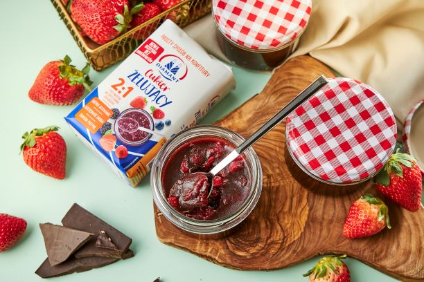 Sekret dobrej konfitury tkwi nie tylko w świeżych owocach (nadadzą się niemal wszystkie), sprawdzonym przepisie i niezawodnym produkcie, który gwarantuje odpowiednią konsystencję. Praca z cukrem, który daje zawsze ten sam, pewny efekt, jest prosta, szybka i przyjemna. Od lat popularnością cieszą się cukry żelujące Diamant, w tym roku w nowych, kolorowych opakowaniach. Oferta jest krótka – cukry żelujące 1:1, 2:1 i 3:1 oraz Konfitur Fix – lecz w zupełności wystarczy do przygotowania przetworów w całym wachlarzu słodkości. Najsłodsze konfitury powstają z cukru 1:1, gdzie na każdą porcję owoców przypada porcja cukru, a najmniej słodkie – z cukru 3:1, gdzie na 3 porcje owoców wystarczy tylko jedna porcja cukru. Konfitur Fix natomiast pozwala na dostosowanie ilości cukru do swoich własnych potrzeb. Każdy z produktów działa zawsze tak samo, dlatego dokładnie wiecie, ile czasu spędzicie i jaki będzie efekt.