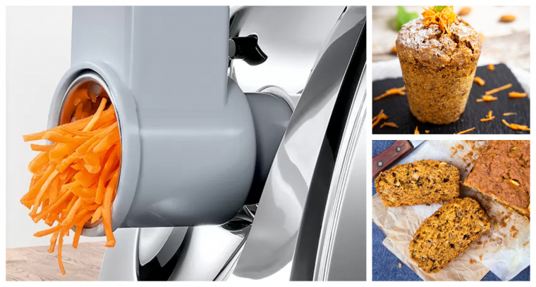 Najbardziej praco i czasochłonnym etapem przepisu jest w tym przypadku starcie marchwi na drobne wiórki. Aby zrobić to szybko i bezproblemowo, najlepiej wspomóc się kuchennym pomocnikiem w postaci wielofunkcyjnej maszynki do mielenia Bosch CompactPower. To urządzenie łączy w sobie funkcje wielu innych kuchennych gadżetów. Wystarczy wymienić nasadkę, aby w kilka sekund zamienić je także w szatkownicę do warzyw. Dzięki wymiennym bębnom możemy dowolnie rozdrobnić marchew w zależności od konkretnego przepisu. Duże bądź drobniejsze wiórki wyczarujemy także ze wszystkich innych owoców i warzyw. Na bazę do roślinnego ciasta czy babeczek doskonale nadaje się także starta cukinia lub burak.