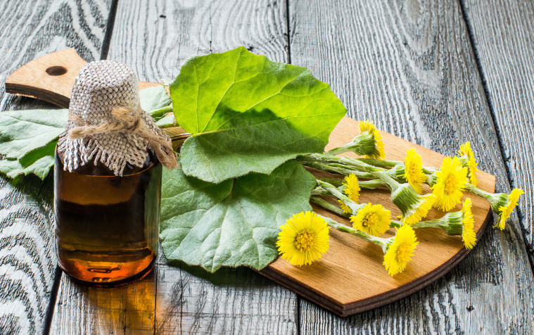 Dzięki wysokiej zawartość flawonoidów, garbników, śluzów, karotenoidów oraz wielu innych substancji, podbiał ma silne właściwości wykrztuśne, przeciwzapalne i przeciwdrobnoustrojowe. Dlatego stosowany jest w leczeniu chorób górnych dróg oddechowych, zwłaszcza tych przebiegających z mokrym lub suchym kaszlem oraz bólem gardła.