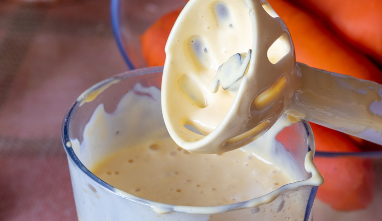 Kolejny częsty błąd zła technika miksowania. Często od razu blendujemy masę na wysokich obrotach, a w tym przypadku najlepiej robić to pulsacyjnie. Trzeba też mieć na uwadze, aby nie blendować majonezu zbyt długo, a jedynie do uzyskania gładkiej, jednolitej konsystencji i odpowiedniej gęstości.