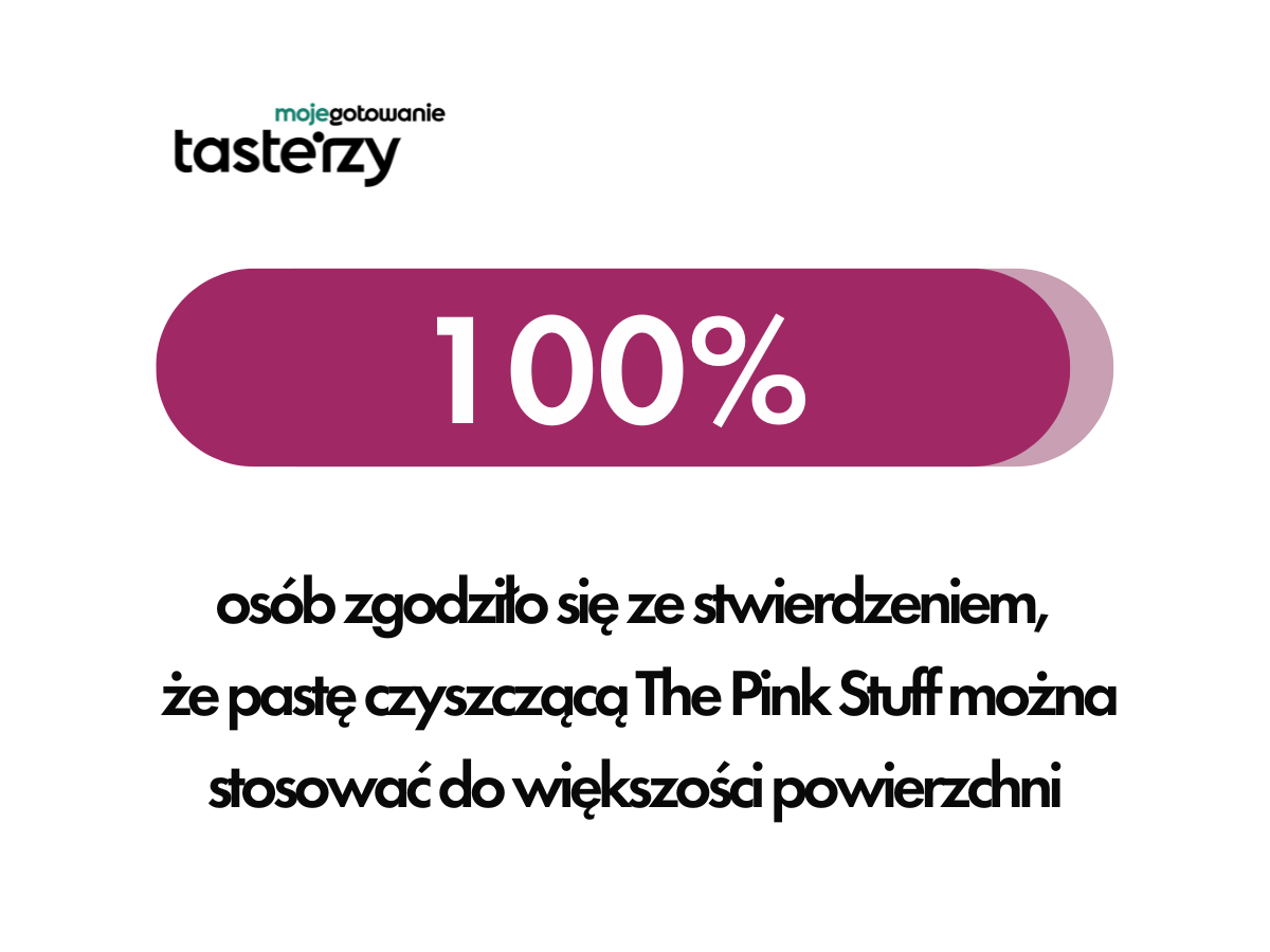 - 10 na 10 osób zgodziło się ze stwierdzeniem, że pastę czyszczącą The Pink Stuff można stosować do większości powierzchni